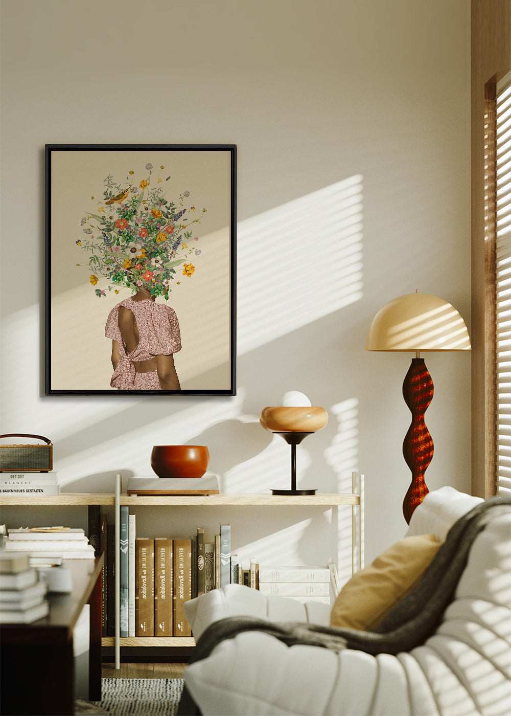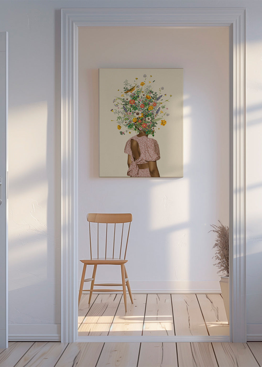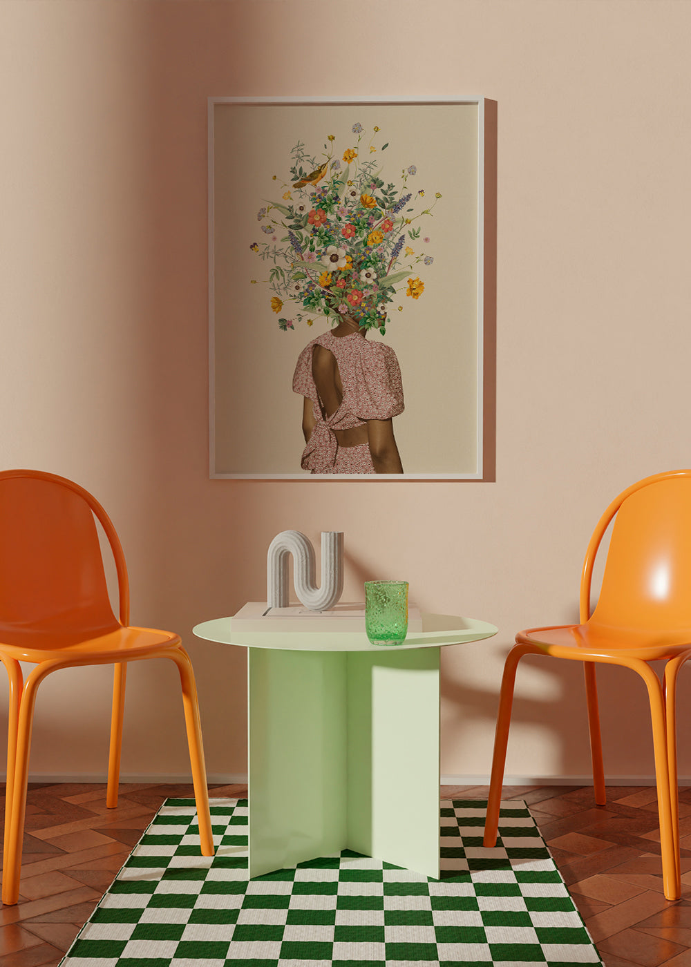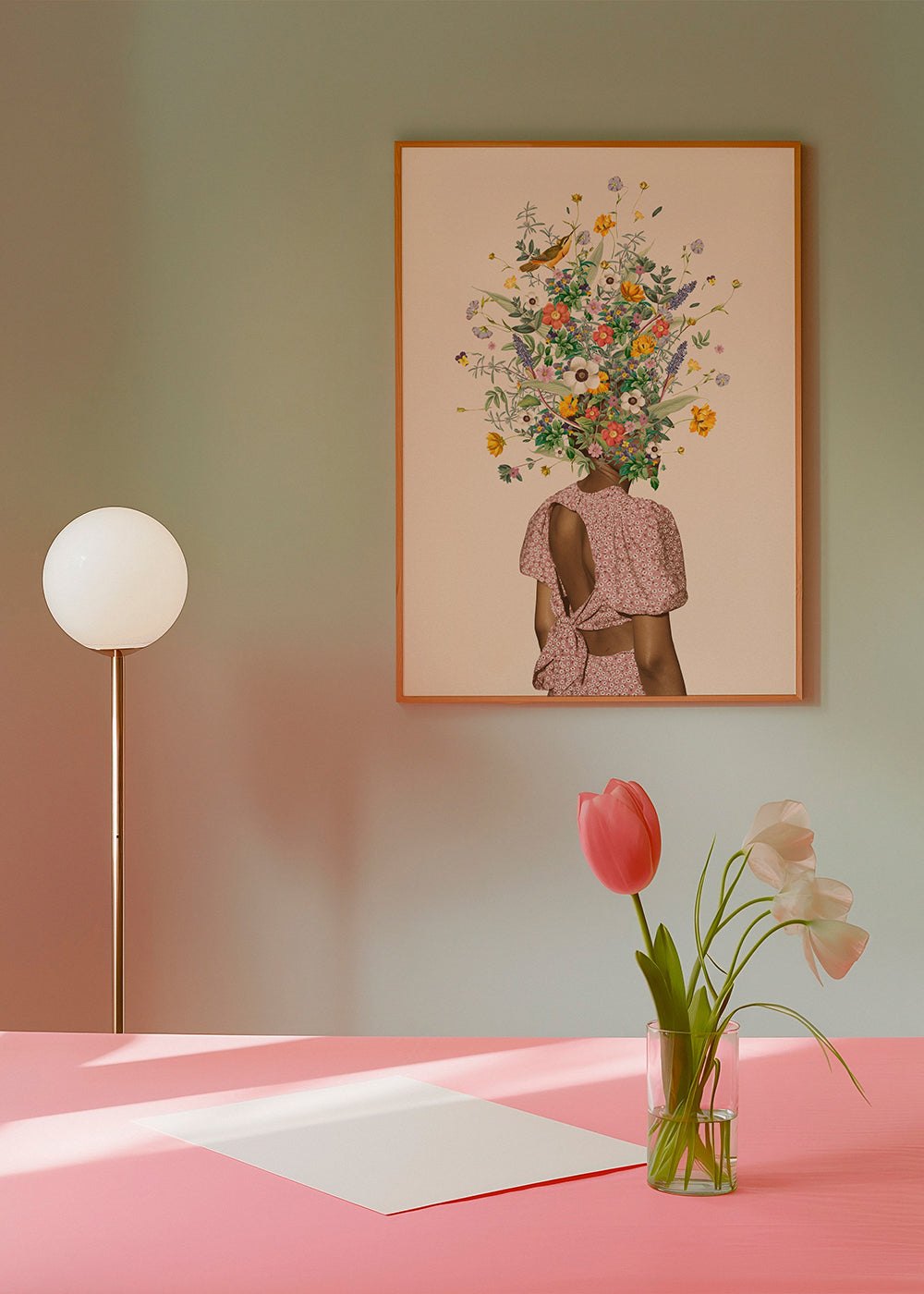 Un disegno dalla nostra selezione di quadri da donna, di Frida Floral Studio, con toni verdi, da appendere in posizione verticale. Un'opera in stile retrò ideale per una decorazione con tocchi vintage. Pareti piene di creatività.