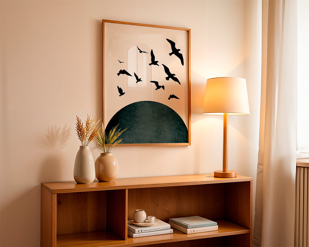 Una opera appartenente alla categoria di quadri con uccelli, creata da Kubistika, con tonalità di colori verdi, e da appendere in posizione verticale. Si tratta di un'illustrazione semplice e pulita, che puoi abbinare ad altre illustrazioni per realizzare una composizione artistica. Riempi le tue pareti di opere artistiche.