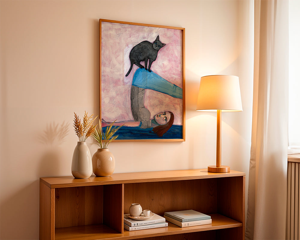 Quadro in stile nordico Yoga with my Cat - Sharyn Bursic