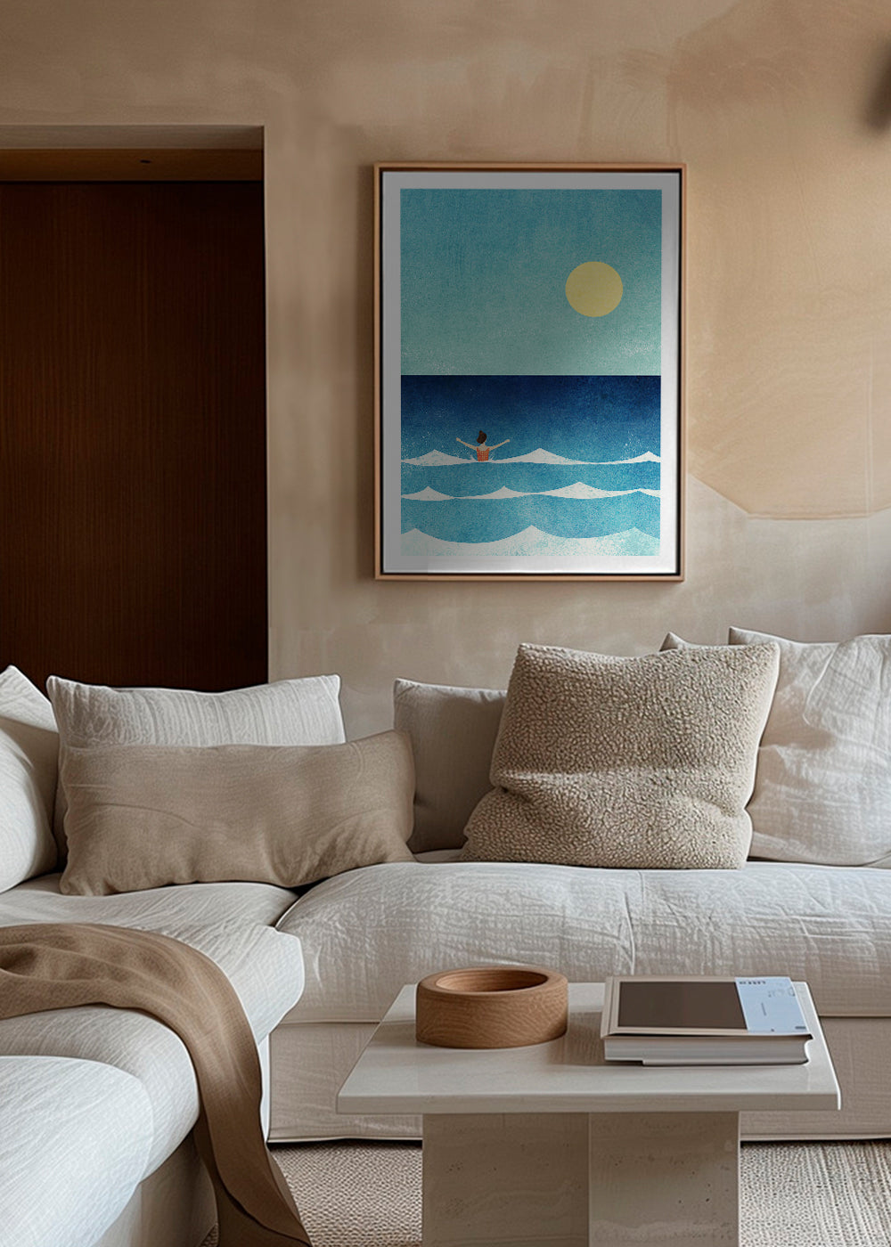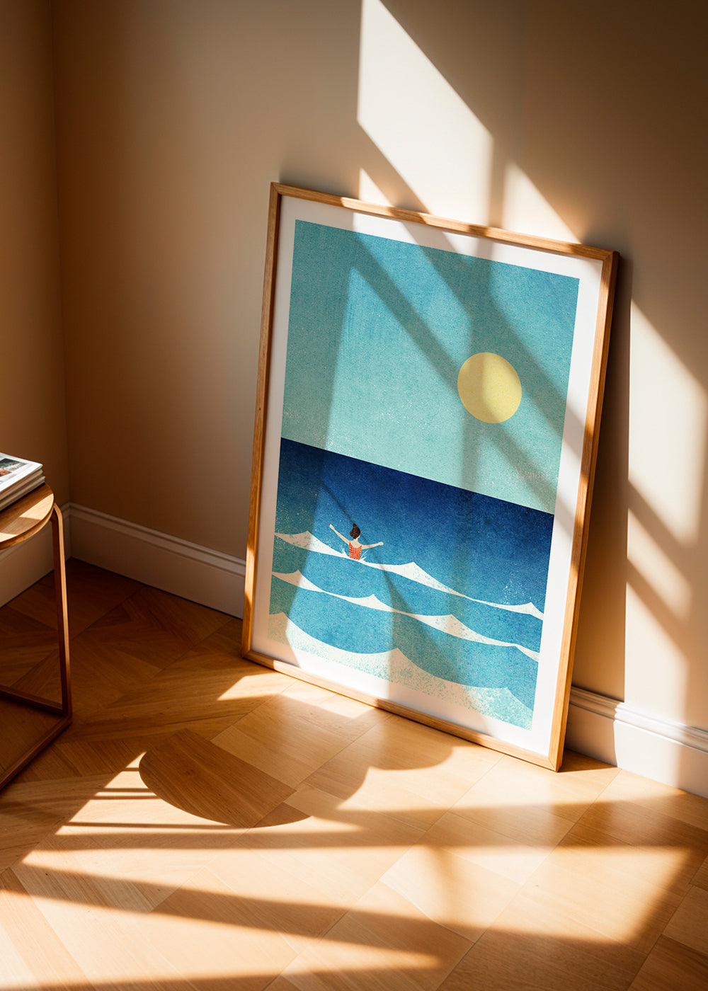 Ein Wandbild aus unserer Kollektion von bilder und poster mit meer, aus der Kollektion des Künstlers Henry Rivers, mit Farbverlauf blau, und geeignet für Bildpositionen vertikal. Teilst du auch unsere Meinung, dass die Natur eine der schönsten Kunstwerke der Welt ist? Kombiniere verschiedenartige Landschaftsbilder, die besonders gut zur Geltung kommen und Frische verleihen. Wie du deine Wohnung einrichten möchtest, ist allein deine Entscheidung.